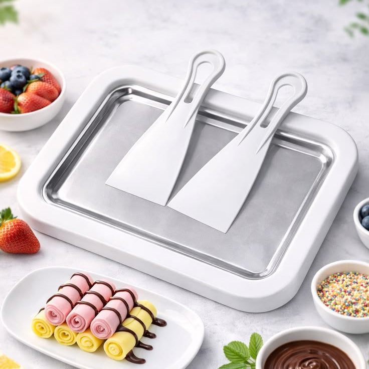 Çocuklarınız her gün farklı bir şey istiyor, siz de hem sağlıklı hem eğlenceli bir şey yapmak istiyorsunuz. Rulo Dondurma Tavası ile kendi seçtiğiniz meyvelerle dakikalar içinde nefis rulolar hazırlayın. Katkısız, doğal, ev yapımı — ve çocuklarınız bizzat katılıyor!